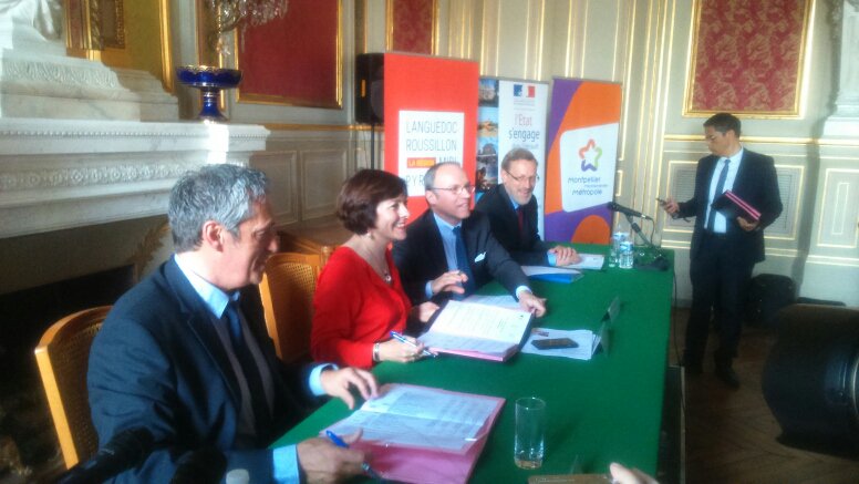 Signature de la convention d’application du Contrat de Plan Etat-Région 2015-2020 Montpellier Méditerranée Métropole . Pour @saurel2014 "C'est un grand jour pour @Montpellier3m , pour la Région et pour l État"
